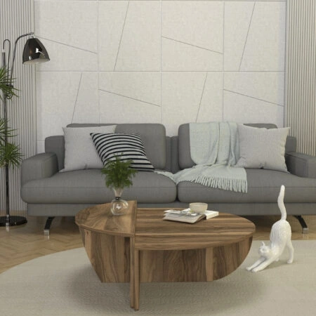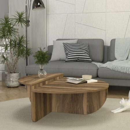 Τραπεζάκι σαλονιού σετ 2 τμχ Hilal Megapap χρώμα καπνιστή καρυδιά Ø66×49,5εκ.