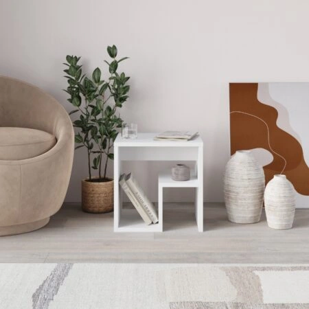 Κομοδίνο – Βοηθητικό τραπεζάκι Tagore από μελαμίνη χρώμα λευκό 30x30x60εκ.