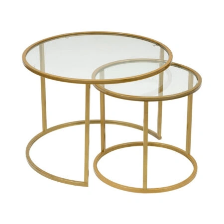 Τραπεζάκι σαλονιού σετ 2 τμχ Vetro Megapap μέταλλο – γυαλί χρώμα χρυσό Ø60×43εκ.