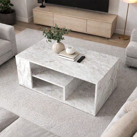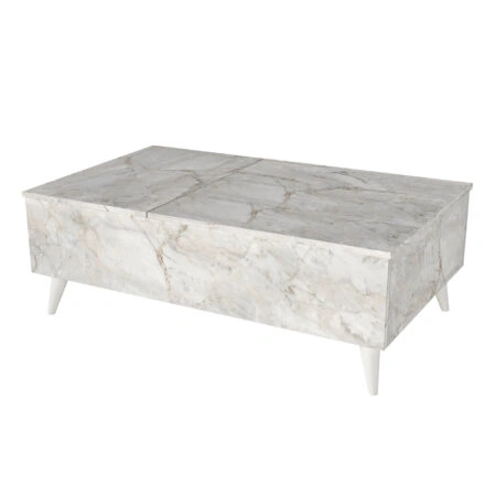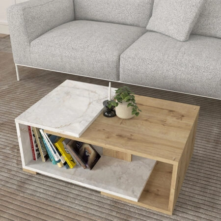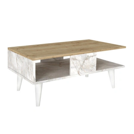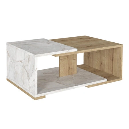Τραπεζάκι σαλονιού Mareta Megapap χρώμα λευκό εφέ μαρμάρου – sapphire oak 81,8x50x35εκ.