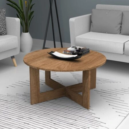 Τραπεζάκι σαλονιού Nilvia χρώμα καρυδί Ø85×35εκ.