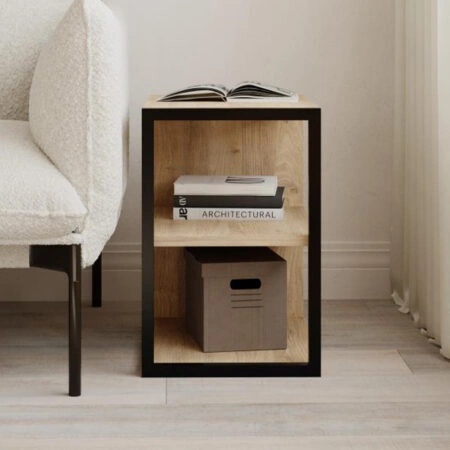 Βοηθητικό τραπεζάκι για φουρνάκι Mulligan μεταλλικό – μελαμίνης χρώμα μαύρο – pine oak 80x40x80εκ.