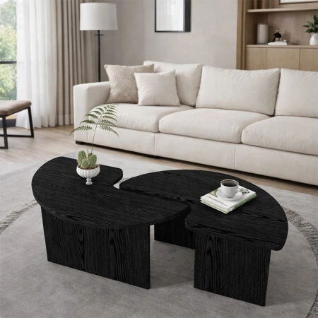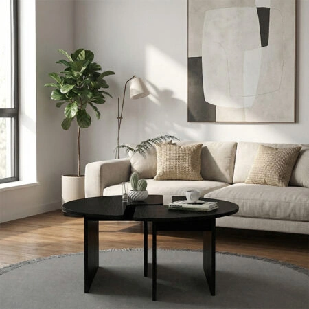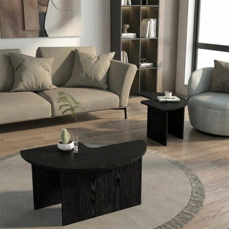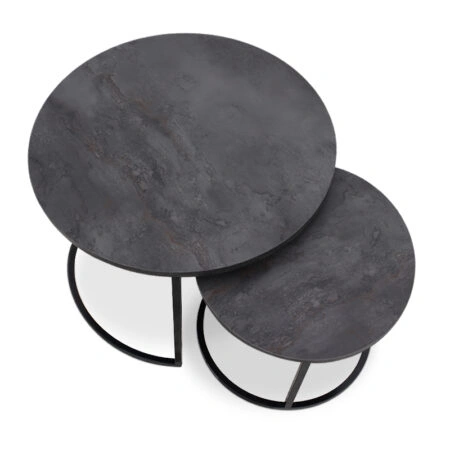 Τραπεζάκι σαλονιού σετ 2 τμχ Dorena Megapap χρώμα sencron black Ø90×41,7εκ.