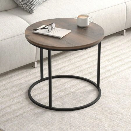 Τραπεζάκι σαλονιού Girene Megapap μεταλλικό – Mdf χρώμα μαύρο – καρυδί Ø55×42εκ.