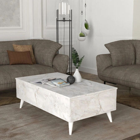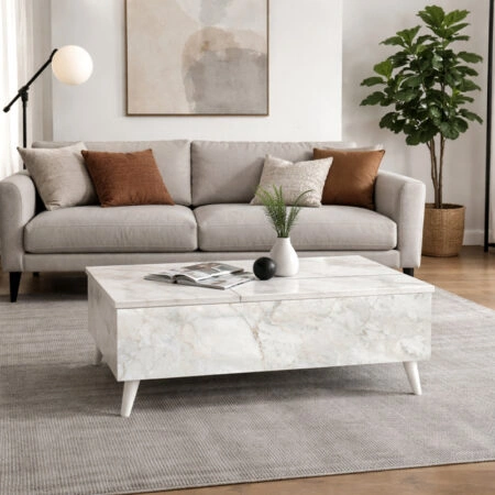 Τραπεζάκι σαλονιού Abdera Megapap χρώμα λευκό εφέ μαρμάρου 110x60x42εκ.