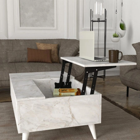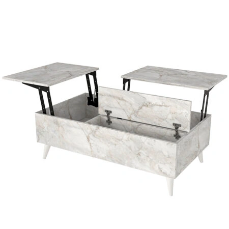 Τραπεζάκι σαλονιού Roy Megapap με σερβιτόρο χρώμα λευκό εφέ μαρμάρου 121x69x40εκ.