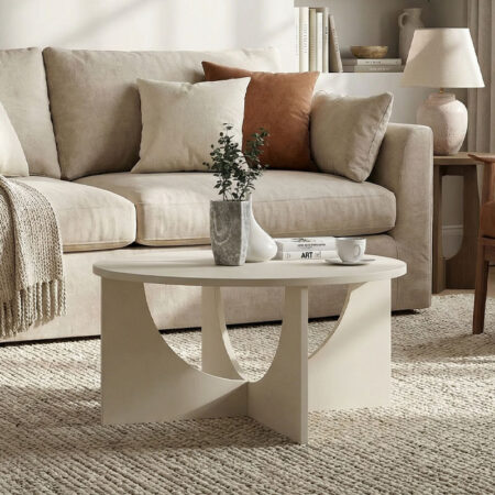Τραπεζάκι σαλονιού Bohema Megapap χρώμα ivory – sepet oak Ø85×43,2εκ.